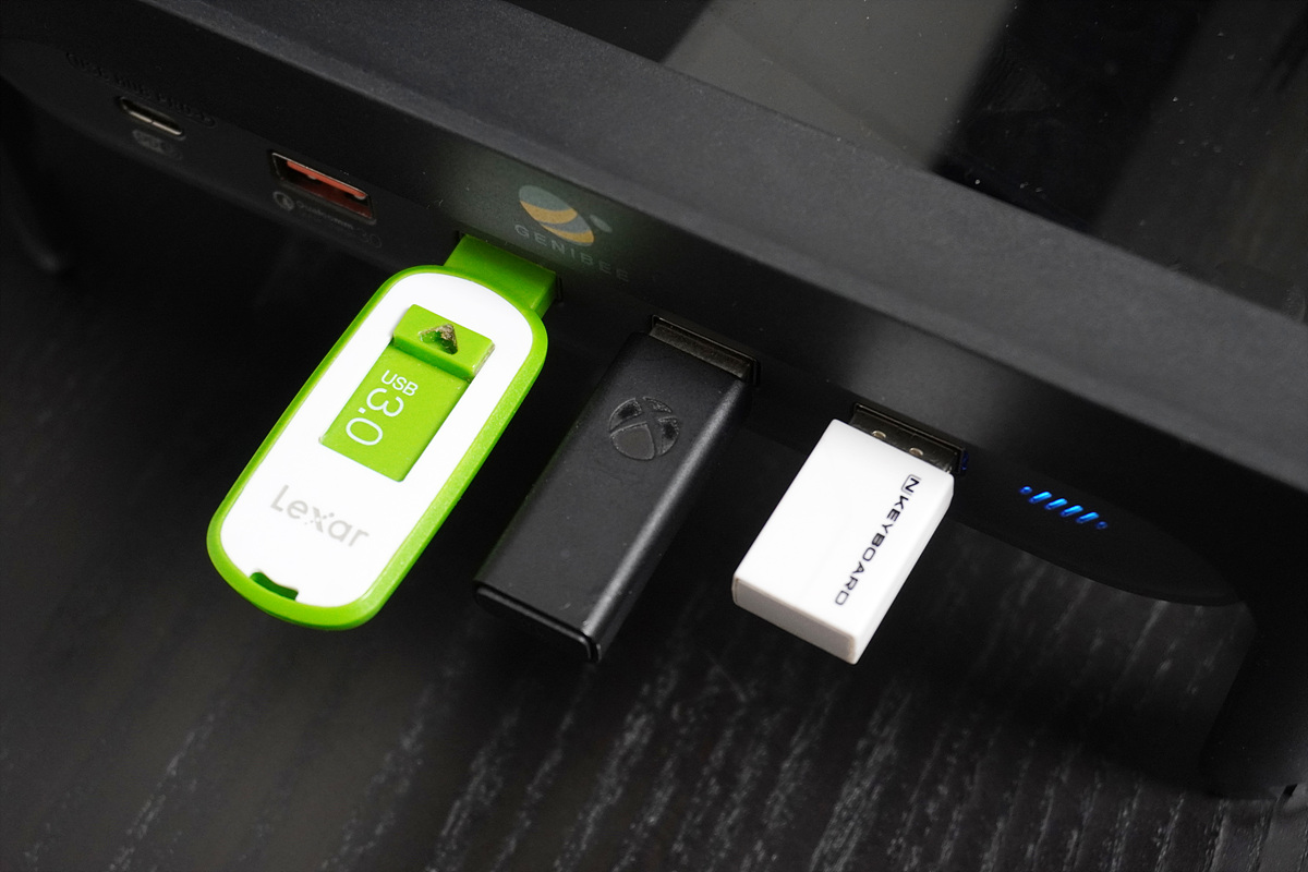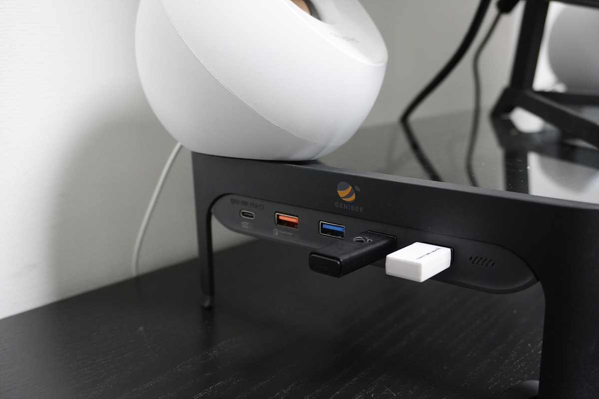 키보드/마우스용 무선 수신기, XBOX 무선 수신기등을 편리하게 사용할 수 있습니다. 개인적으로 오른쪽보다는 이렇게 왼쪽으로 사용하는게 걸리적거리지 않아서 더 좋았습니다.
