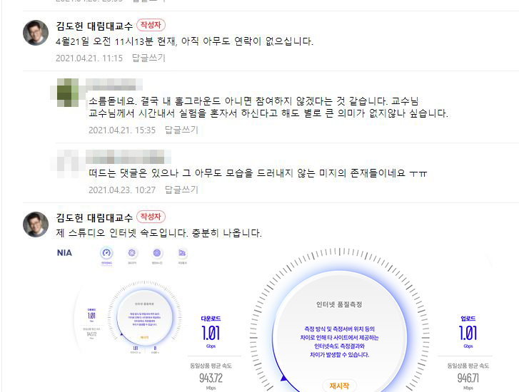 들어보면 판이 바뀔정도로 소리가 달라진다면서 왜 아무도 신청을 안한건지? 교수님이 말을 바꿔서 테스트 거부했다는 이상한 소리나 하더만 왜 신청을 안하는거야? 부디 내일 오후에는 블라인드 테스트가 꼭 이루어지길 바랍니다.