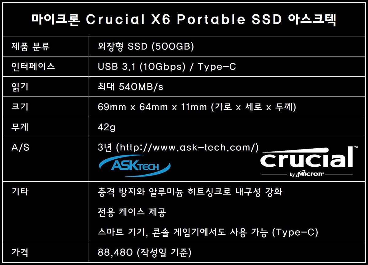 ■ 마이크론 Crucial X6 Portable SSD (아스크텍)