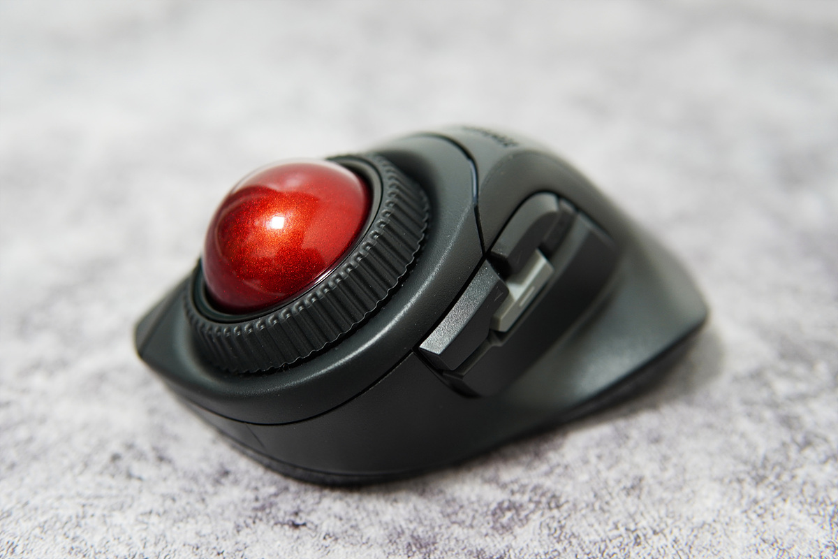 트랙볼의 크기는 제법 큰 편으로 대부분의 버튼 조작은 엄지, 볼의 움직임은 검지, 휠 스크롤은 중지, 오른쪽 버튼은 4번째 손가락인 약지로 조작을 할 수 있습니다. 이런 사용은 고정이 아니라 오른쪽 버튼은 중지로 사용을 할 수도 있습니다. 마우스의 그립과 마찬가지로 정답이 있는게 아니기때문에 사용자 본인이 본인이 가장 편안 방법으로 사용하면 됩니다. 기존에 켄싱턴 트랙볼을 사용했던 사용자로서 전체적인 그립감이 상당히 좋아졌다는 느낌을 받았습니다. 처음 사용을 하는 분들이라면 볼(Ball)을 굴리는게 조금은 생소하겠지만 손을 올려놓았을때의 버튼의 위치가 편하고 기존 마우스와 의 이질감이 적은 편입니다.