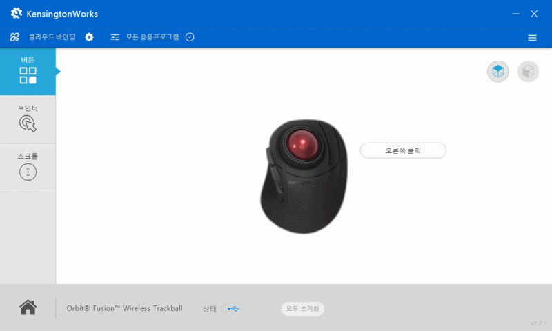 켄싱턴웍스는 버튼 / 포인터 / 스크롤 3가지 탭으로 이루어져 있습니다.