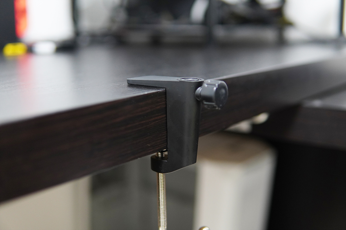 암 스탠드를 고정하기 위해서는 먼저 클램프를 책상에 고정시켜야 합니다. 모니터 암과 마찬가지로 설치 위치에 따른 제약이 있으니 위치를 잘 잡아서 설치를 하시기 바랍니다.