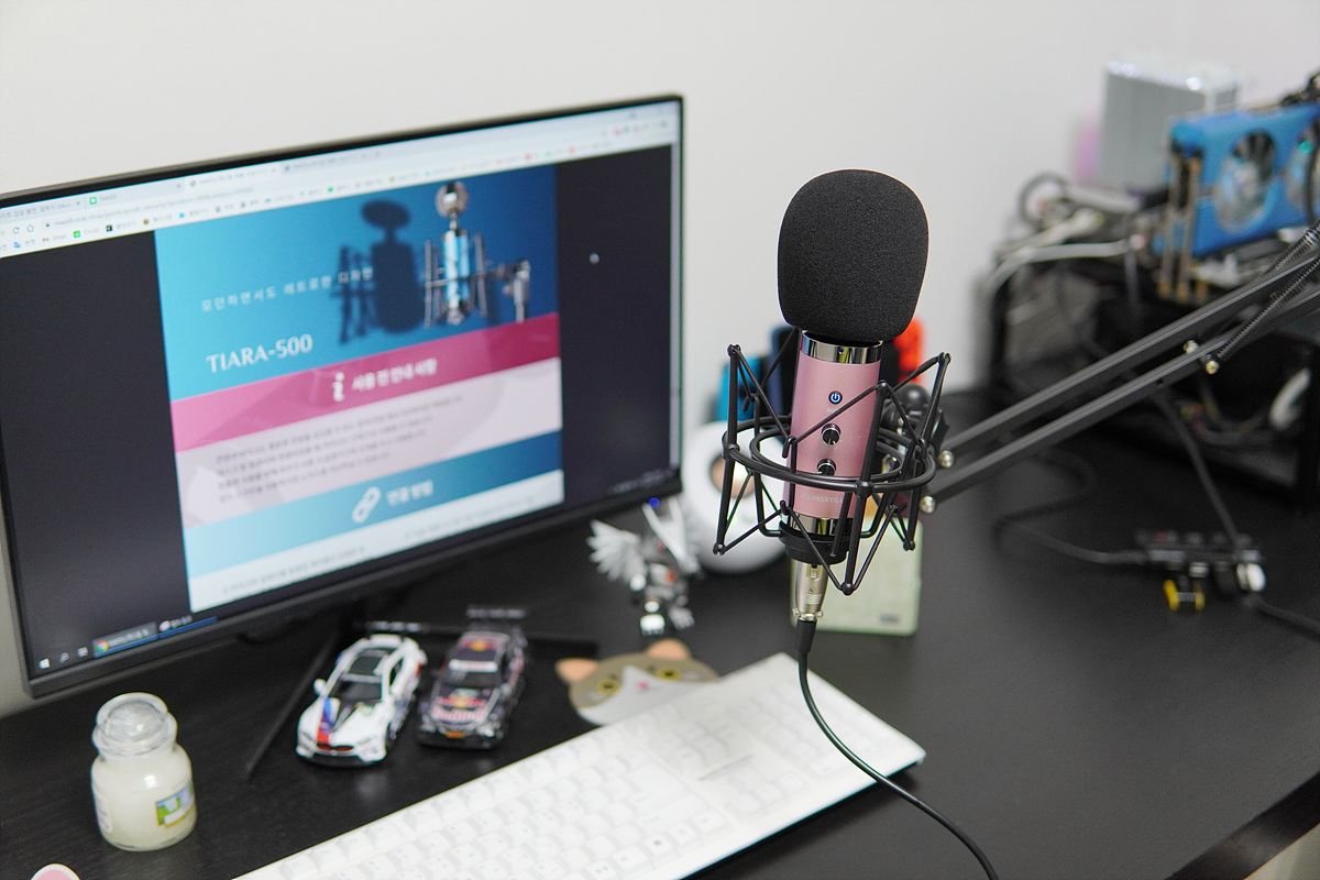 마이크는 사용하는 용도나 장소에 따라서 몇가지 종류가 있지만 PC에서는 일반적으로 콘덴서 타입의 마이크가 주를 이루고 있으며 USB나 별도의 콘솔(오디오 인터 페이스)에 연결해서 사용하게 됩니다. 이번에 소개하는 제품 역시 맥스틸에서 새롭게 출시한 콘덴서 타입의 TIARA-500 마이크입니다. 맥스틸 하면 맥마강(맥스틸은 마우스에 강하다)라는 단어처럼 마우스가 가장 먼저 떠오르지만 기존에도 마이크 제품을 출시되었고 마우스처럼 가성비가 꽤 좋은 편입니다. 저도 현재 한개 사용하고 있으며 온라인 수업을 주로 하는 동생 역시 구즈넥 타입의 마이크를 사용하고 있는데 온라인 회의를 할때면 동료들이 가끔씩 어떤 마이크를 쓰는지 물어보고 가격을 이야기해주면 좀 놀란다고 하네요.