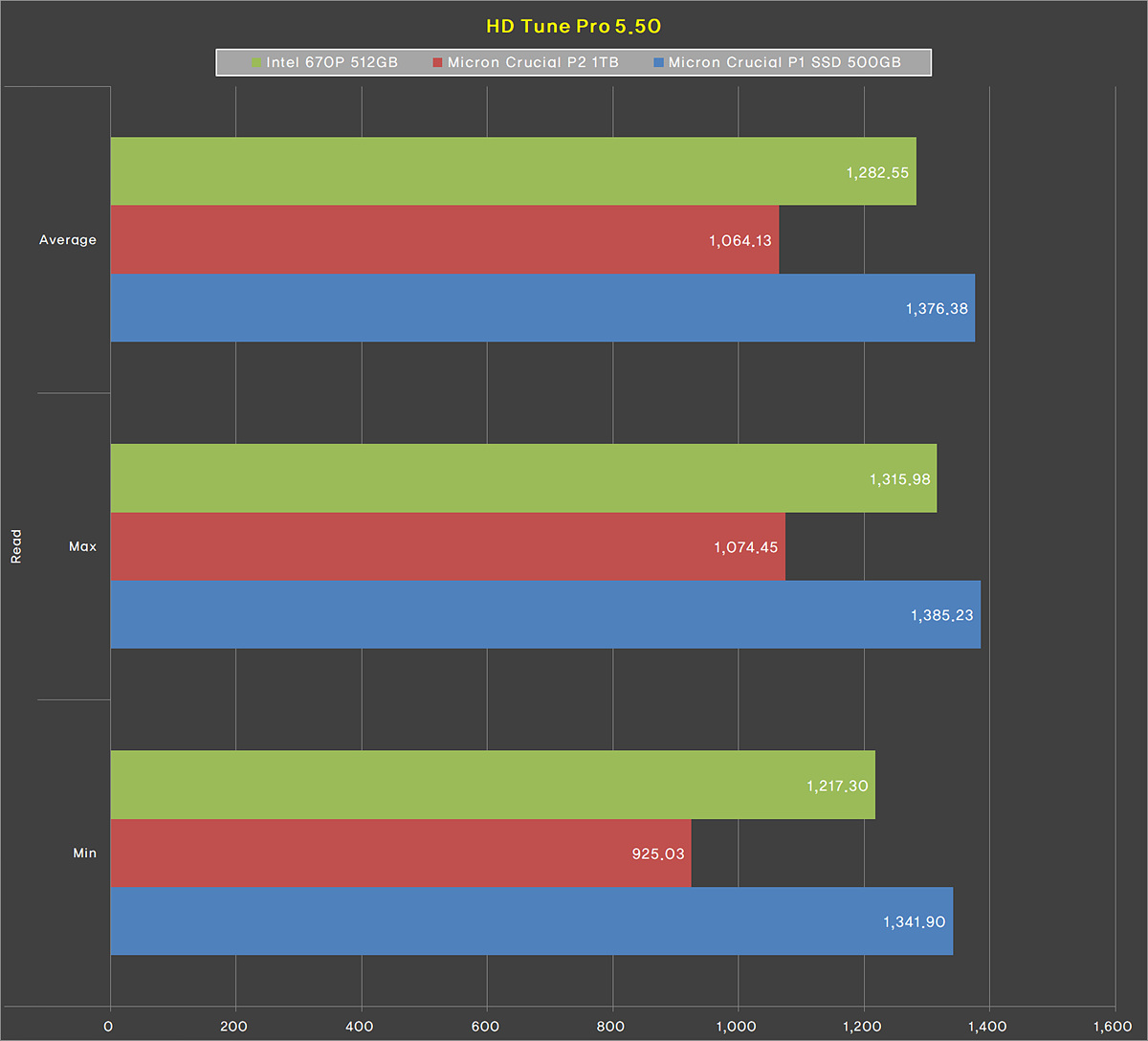 기존에 테스트했었던 마이크론 QLC SSD인 P1, P2와 비교 데이터입니다. 4K도 그렇지만 순차 읽기 능력은 압도적이라고 할 수 있을만큼이네요.