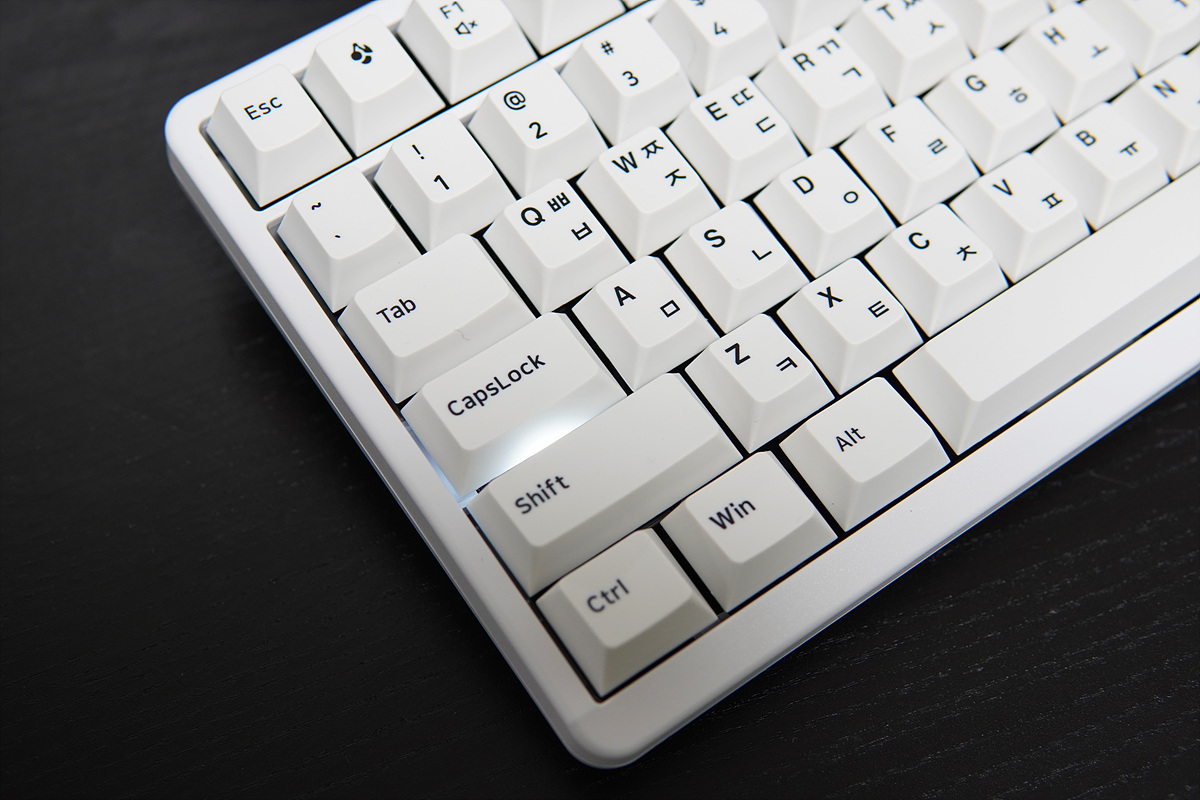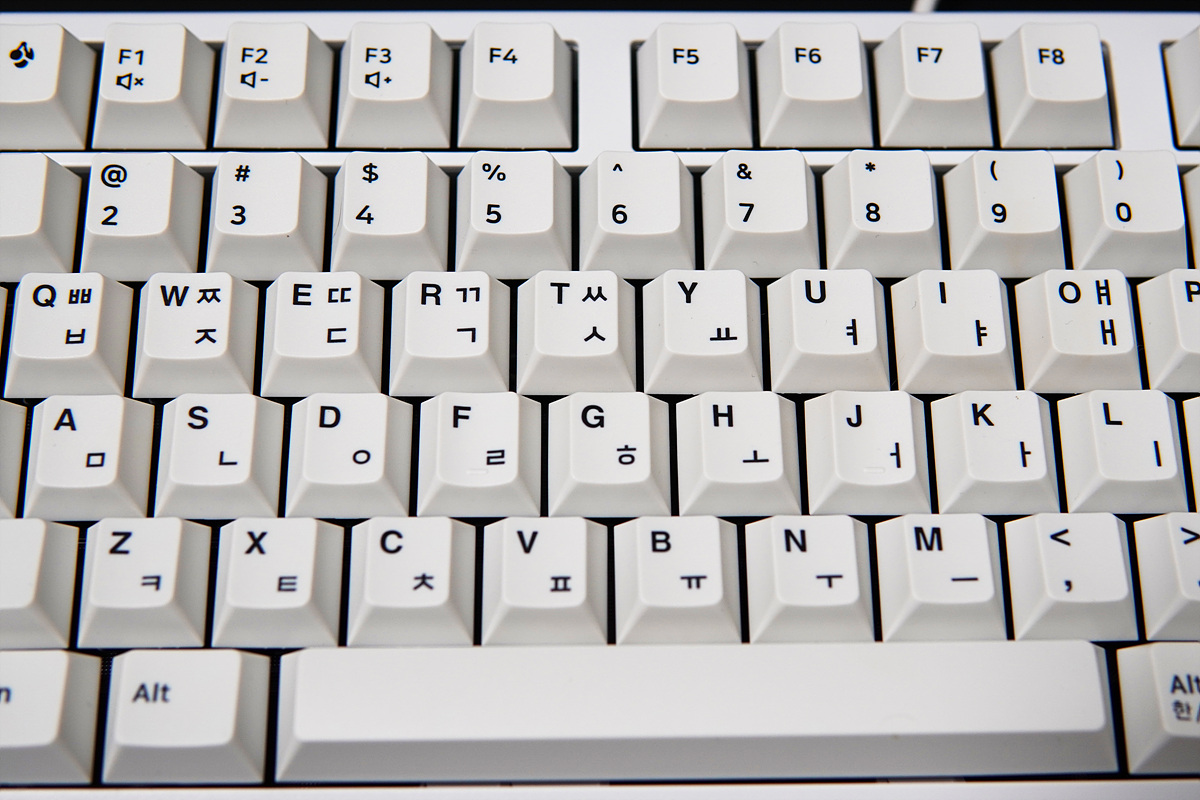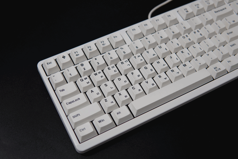 하우징과 키캡의 화이트는 약간 차이가 있습니다. 저는 키캡의 색도 그렇지만 확실하게 표시되는 폰트 역시 상당히 마음에 들었습니다. (약간은 레트로 감성도 느껴지더군요.)