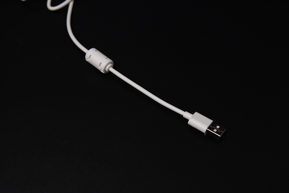 케이블도 화이트로 되어있으며 노이즈 필터(페라이트 코어)가 장착되어 있습니다.