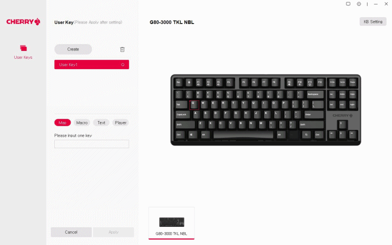 Cherry G80-3000S TKL 키보드의 스펙을 간단히 정리해보았습니다. 풀배열이 아닌 텐키리스 배열로 되어있으며 RGB LED는 빠져있습니다. 대부분의 체리 키보드처럼 non RGB = PBT 키캡의 공식이 그대로 적용이 되었으며 보강판이 없는 무보강 타입으로 되어있습니다. 체리 키(Key)를 통해 전용 소프트웨어의 설치뿐 아니라 실행을 할 수 있으며 이 프로그램으로 여러가지 키를 매핑(Mapping) 할 수 있습니다.