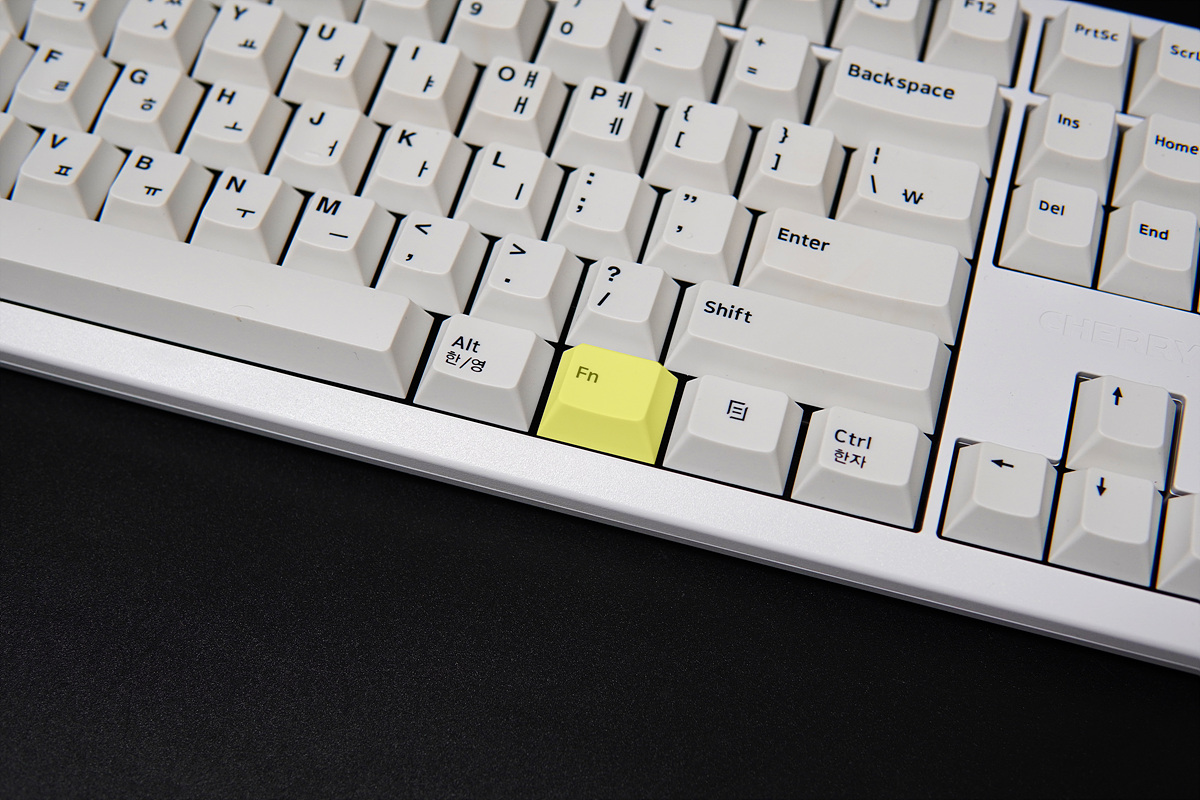 Esc와 F1키 사이에는 체리(Cherry)키가 있습니다. 체리 키보드를 꽤 많이 사용해봤는데 적응하기 힘들더군요. 왜 계속해서 이런 레이아웃을 고집하는지 궁금합니다.