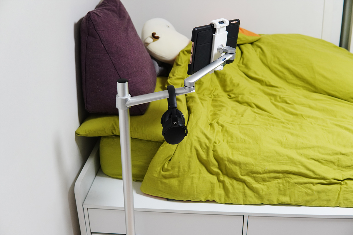 위에서 언급을 했지만 집에서 사용할때 아리스노보 스탠드를 가장 잘 활용할 수 있는 장소는 침대라고 생각합니다. 다른 제품들과는 다르게 독립적으로 세운 상태로 기기들을 거치할 수 있는 스탠드의 종류는 그리 많지 않습니다. 그렇기때문에 침대에서 많은 시간을 보내는 분들이나 투병중인 환자들에게도 상당히 요긴하게 사용할 수 있는 아이템입니다. 실내에서 자전거나 트레드 밀(런닝 머신)과 같은 기구로 운동을 할때도 사용할 수 있습니다.