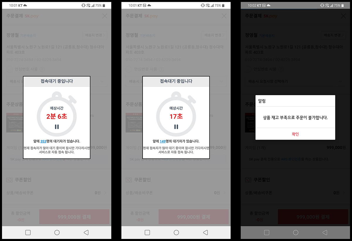 결제창도 보고 ARS 인증까지 한 덕에 상당히 기대를 했었는데 인증을 마치자마자 대기 인원이 300명이 넘어가더군요. 역시 오늘도 실패였습니다. 그래도 결제창이라고 봤으니 그걸로 위안을 삼아야겠습니다. 시장이 이런 상태로 계속 유지가 되고 있으니 리더스에서 판매하는 FE버전이 아니면 그냥 다음 세대를 기약해야겠습니다.