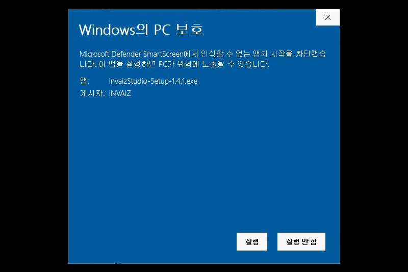 프로그램 설치시 경고가 나와도 추가 정보 -> 실행으로 설치를 진행하시기 바랍니다.