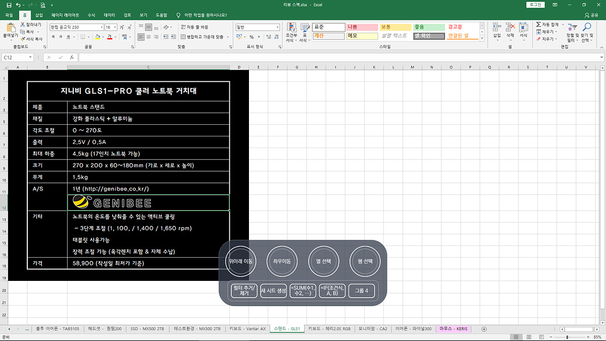 엑셀에서 블럭 지정을 하거나 시트(sheet)를 만드는 기능도 한 번에 가능합니다.