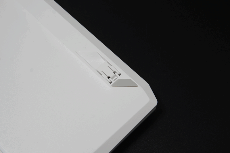 키보드의 미끄럼과 진동을 줄여주는 실리콘은 모서리 4곳에 부착되어 있지만 높이 조절용 다리에는 따로 적용이 되질 않았습니다. 키보드 다리를 세워서 사용하는 저 같은 사용자들에게는 아쉬운 부분입니다.