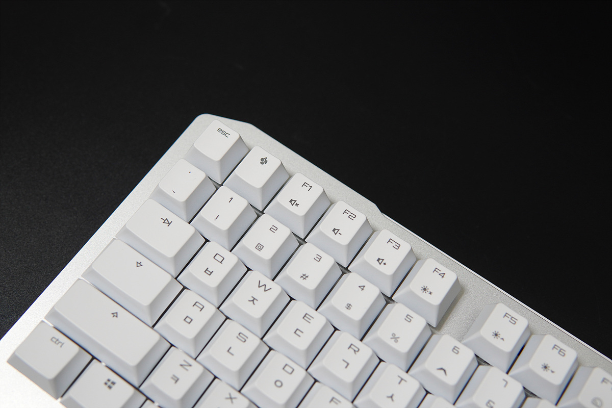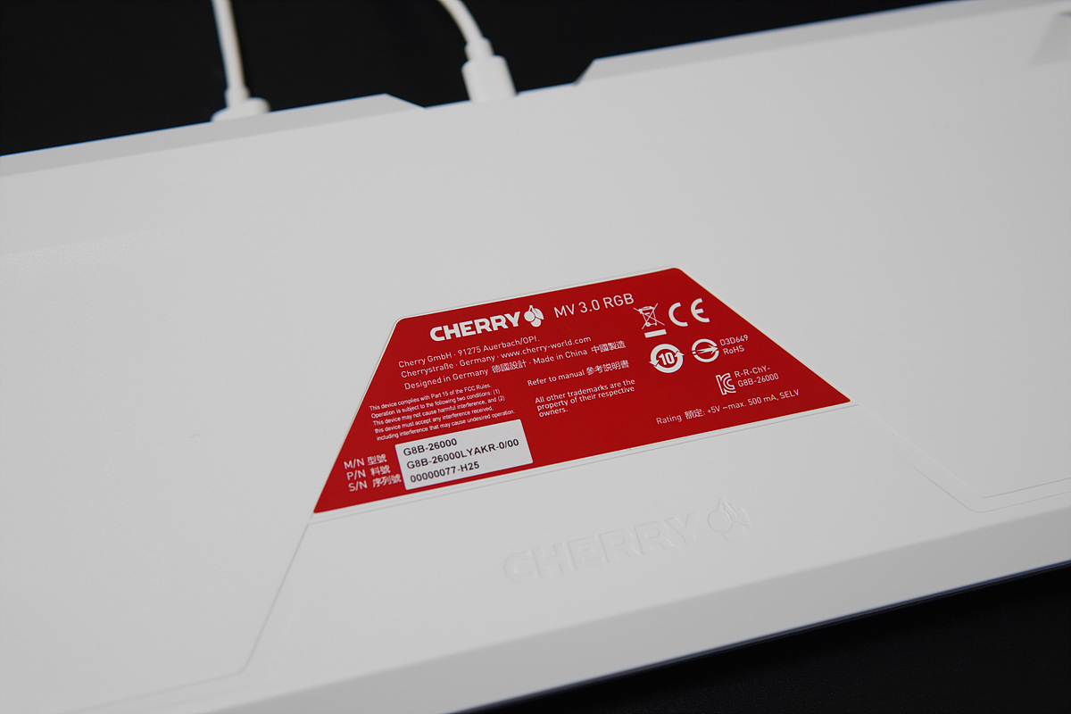 키캡은 ABS 재질로 UV 코팅을 통해 한/영 모두 레이저 각인으로 글자와 LED를 투과하고 있습니다. 기존 체리 키보드에서 "RGB = ABS", "nonRGB = PBT"의 방식이었는데 MV3.0 역시 같은 공식이 적용되었습니다. PBT까지는 아니더라도 레이저 각인이 아닌 이중사출 방식을 사용했으면 더 좋았을 거라 생각합니다. G80-3000 TKL 키보드처럼 PBT 재질에 이중사출이라면 더욱 좋겠죠.