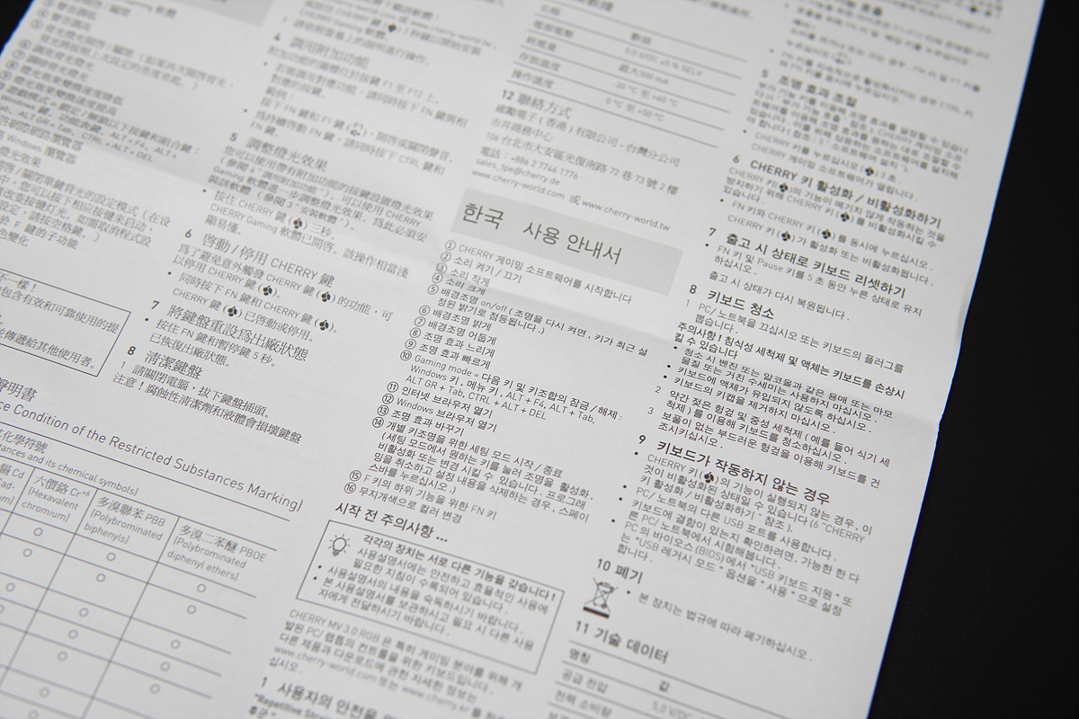 체리 키보드들을 사용하면서 계속해서 지적했던 레이아웃과 체리 키(key)가 그대로 사용된 부분은 개인적으로 많이 아쉬웠습니다. 정말 이상한 곳에서 고집을 부리는 거 같다는 느낌이 들더군요. 이 두 가지 부분만 해결이 된다면 국내에서의 판매율이나 인식도 훨~~씬 더 좋아질 거라 생각합니다. 제품의 장/단점을 끝으로 마무리를 하겠습니다. 오타나 수정 그리고 추가되어야 할 부분이 있다면 댓글로 알려주세요. 확인 후 수정하도록 하겠습니다.