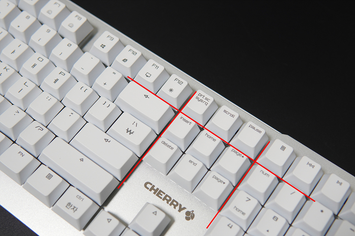 키 배열이 붙어있는 부분도 그렇고 이 체리 키(Key)는 정말 개선이 되었으면 좋겠습니다. 체리 키를 비활성화할 수도 있지만 일단 기본 배열과 달라지게 되면 사용뿐 아니라 오타도 늘어나게 됩니다. 체리에서는 독자적인 레이아웃을 만들고 싶어 하는 건지 왜 계속해서 이런 부분들을 고집하는지 잘 모르겠습니다.
