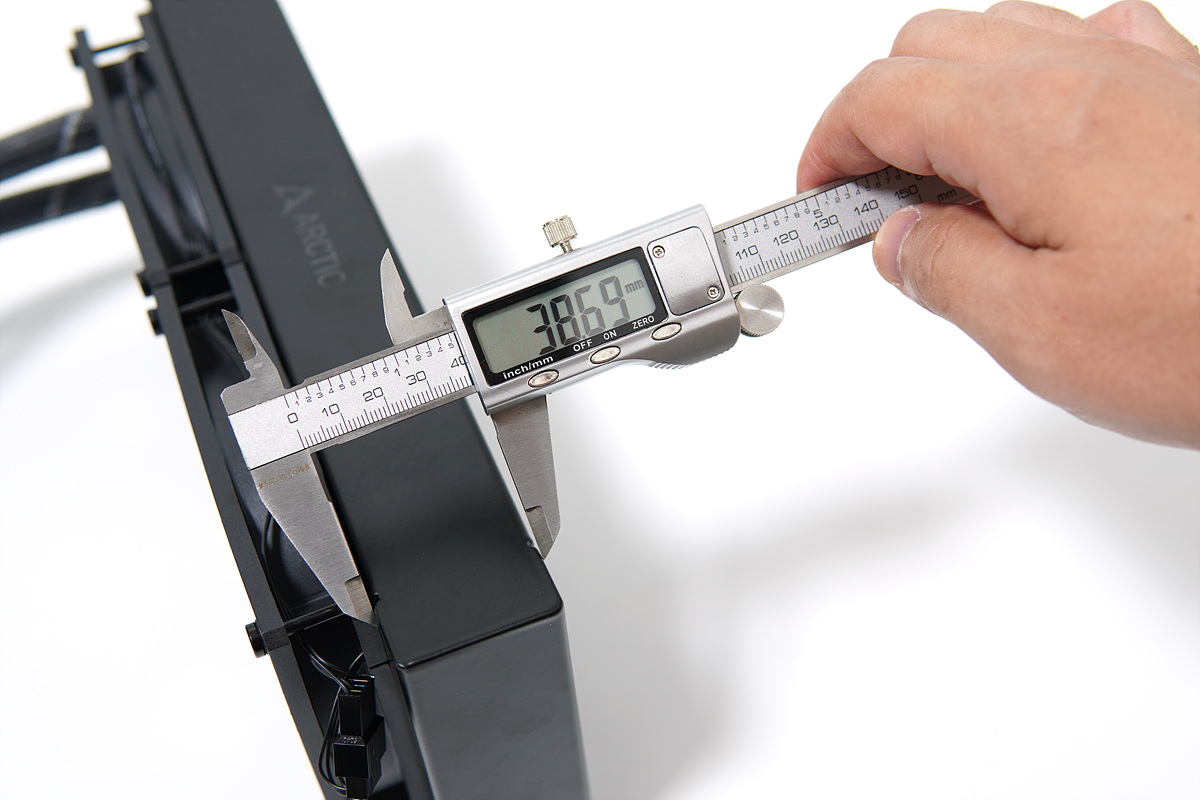 Freezer II의 라디에이터는 다른 수랭 쿨러보다 조금 더 높은 편입니다. 라디에이터의 면적에 따라 쿨링 능력은 더 좋아지지만 반대로 케이스에 장착할 때는 상단 쪽 여유공간이 되는지 꼭 확인해야 합니다.