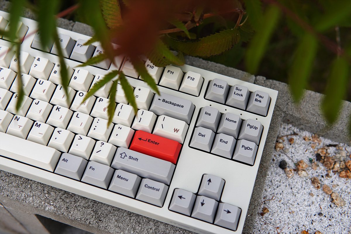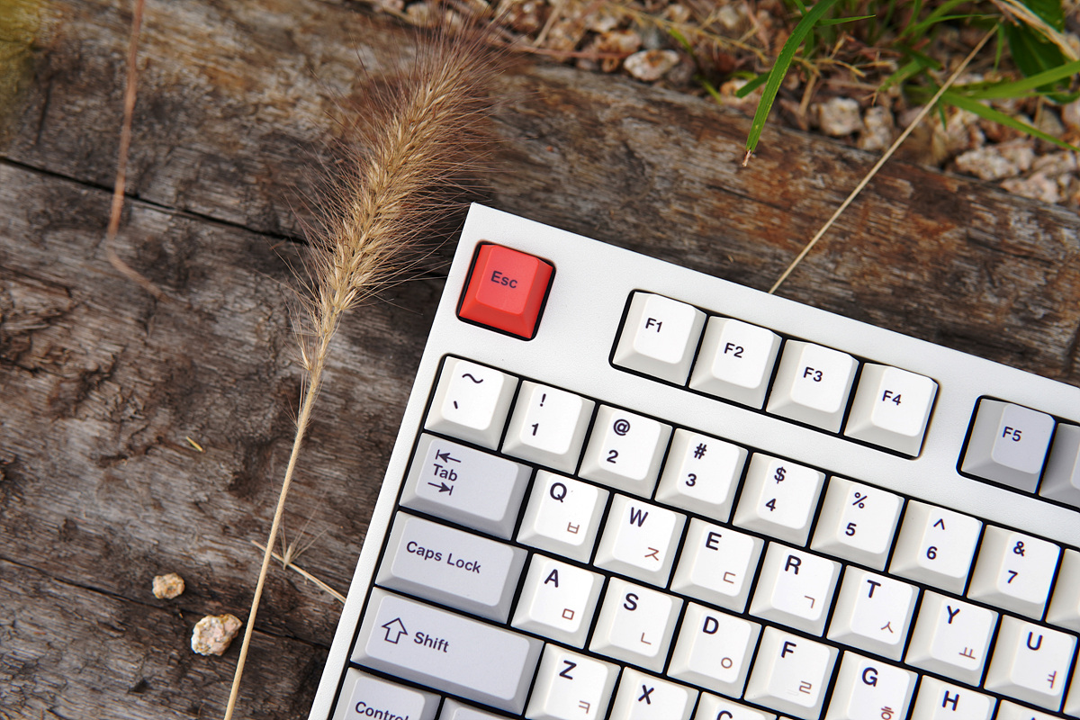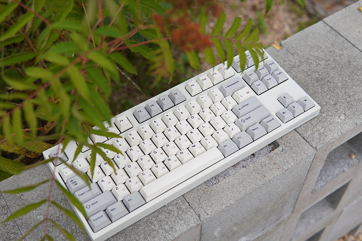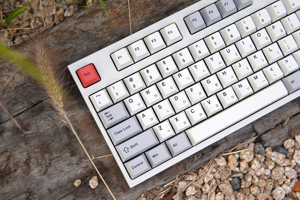 Groove T 키보드는 다른 제품들과는 조금 다르게 하우징과 키캡에 따라 종류가 꽤 많은 편입니다. 제가 소개하는 제품은 라이트 그레이 제품입니다. 야외에서 찍어서 좀 밝게 촬영이 됐는데 화이트보다는 살짝 어두운 아이보리에 가까운 색으로 상당히 깔끔한 느낌입니다. 분필 키캡으로 부르는 클라리온 버전도 있는데 이 제품도 정말 강추합니다. 저는 클라리온 색이 맘에 들어서 키캡만 따로 구매를 했습니다.