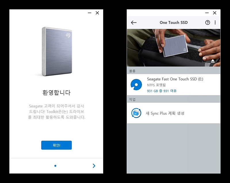 Fast One Touch SSD 데이터복구 제품은 Toolkit 소프트웨어로 PC와 간편하게 동기화로 데이터 백업을 할 수 있습니다. 파일 포맷에 관계없이 Windows / Mac에서 모두 사용할 수 있습니다.