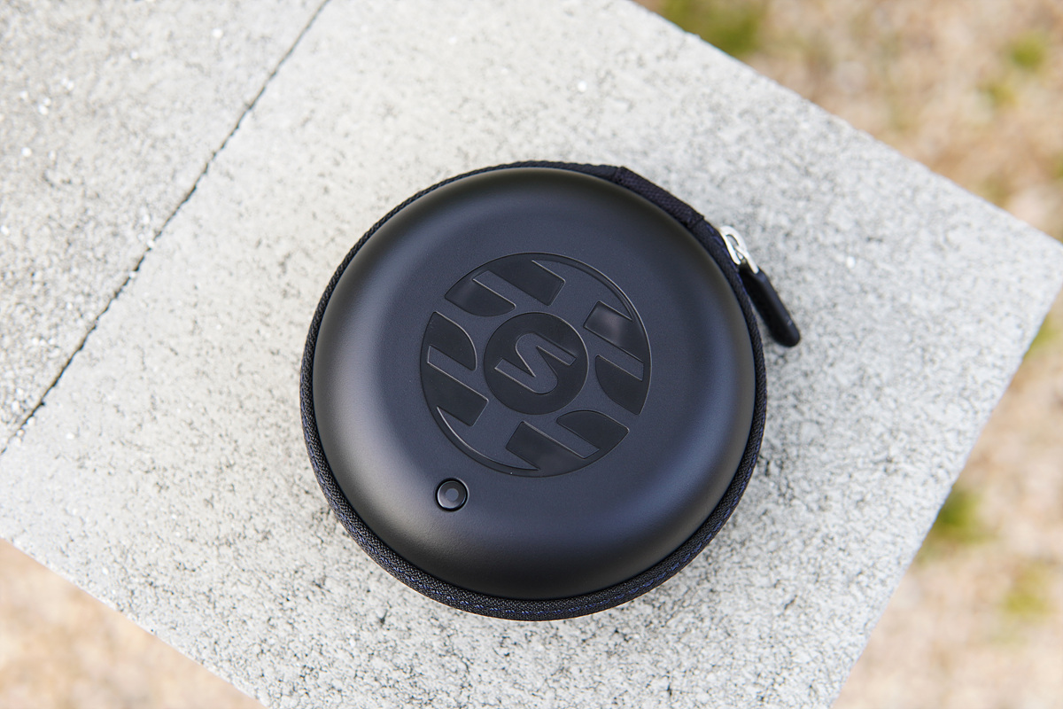 충전을 할 수 있는 보관 케이스 위쪽에는 슈어의 로고가 있으며 아래쪽으로는 유닛의 충전 상태를 확인할 수 있는 LED가 있습니다. (버튼처럼 생겼지만 상태 확인 LED만 있습니다.)