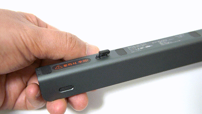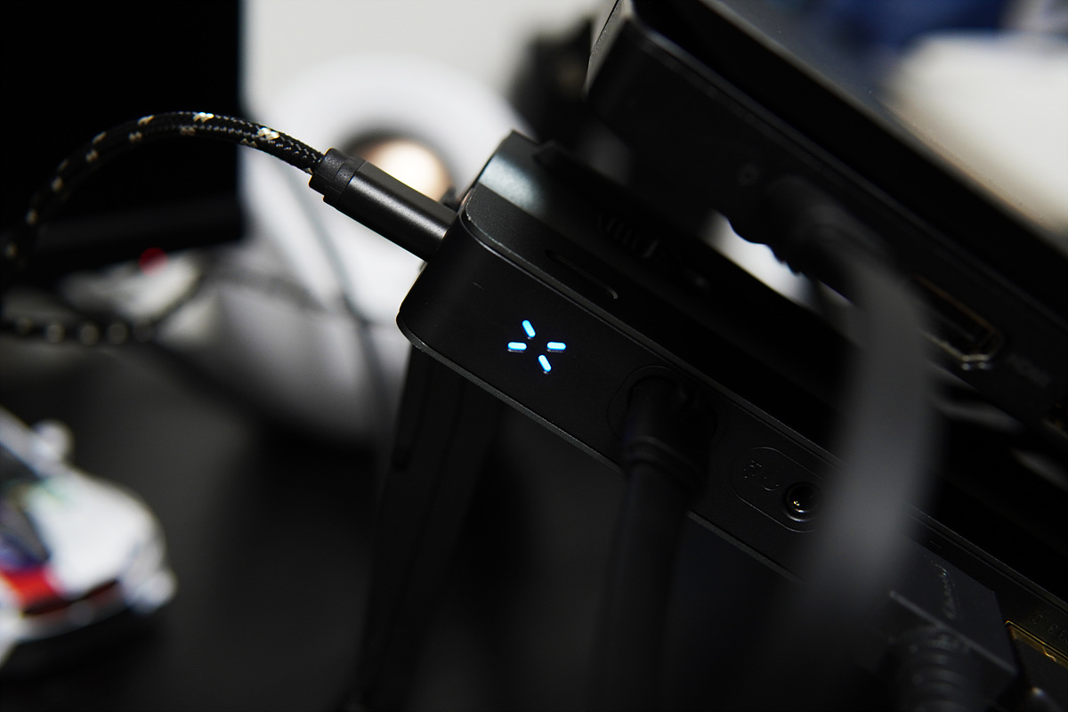 충전 케이블이나 노트북의 Type-C 포트에 연결하면 파란색 LED가 켜집니다.