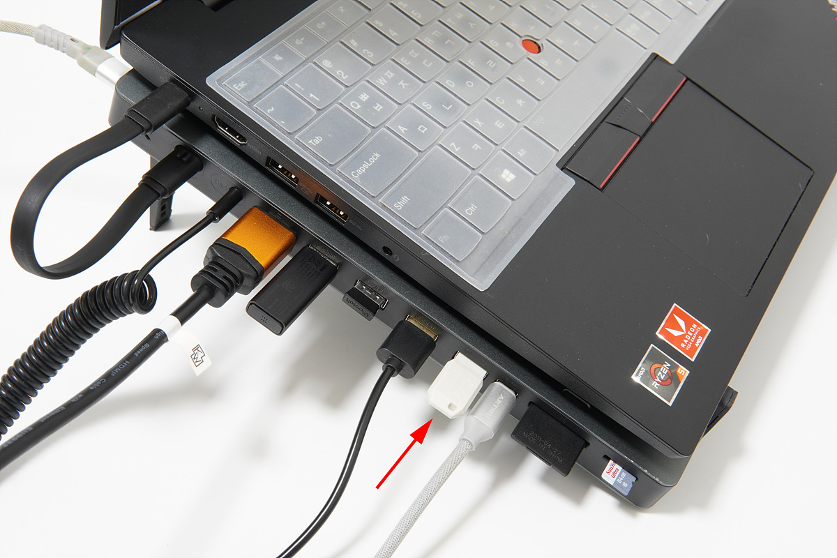노트북과 연결되는 포트는 별도의 홈을 만들어서 케이블의 고정력을 높였습니다.