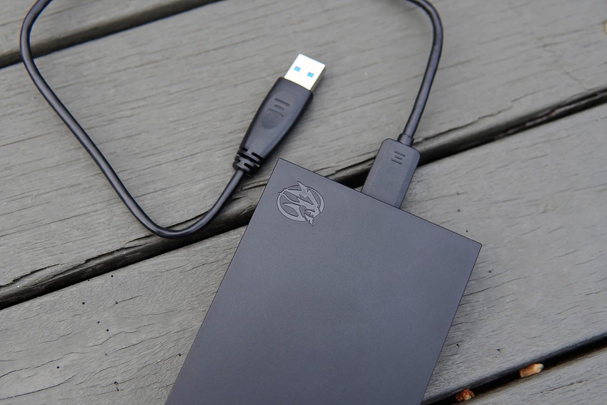 게이밍이라는 이름에 맞게 파이어쿠다 스티커가 있습니다. 저 같은 사용자들에게는 아주아주 반가운 구성품이죠. 이런 스티커가 있는 건 칭찬해주고 싶지만 외장 저장장치에서 꼭 필요한 전용 파우치나 케이스가 없는 부분은 많이 아쉬웠습니다. 씨게이트뿐 아니라 모든 외장형 저장장치(HDD, SSD)를 소개하면서 항상 언급하는 부분인데 USB 메모리와 다르게 별도의 케이블이 있는 만큼 가지고 다닐 때는 케이스가 있어야 편리하게 사용할 수 있습니다. HDD는 SSD에 비해 충격에 더욱 조심을 해야 하기 때문에 장치를 보호할 수 있는 케이스는 더더욱 필요하기 마련이죠.
