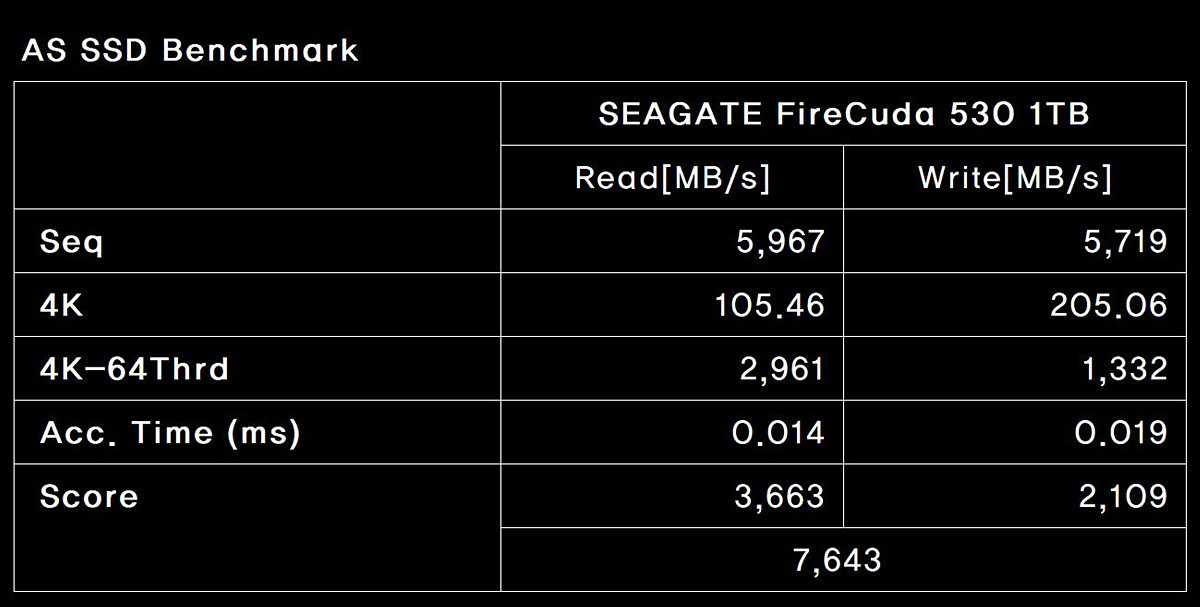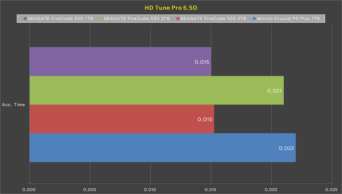 4K의 성능뿐만 아니라 Access Time의 결과 역시 상당히 인상적이었습니다. 기존에 씨게이트 SSD가 Acc Time은 좀 약한 모습을 보여왔었는데 이번 테스트는 기존 제품들보다 확실히 좋은 성능을 보여주었습니다. Access Time은 낮을수록 좋은 결과를 나타냅니다.