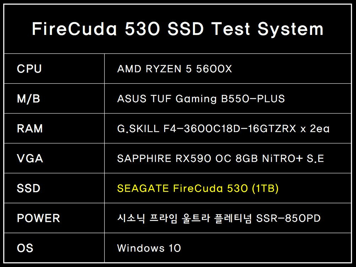씨게이트 제품들은 벤치마크(Benchmark)를 하게 되면 유독 Access Time에서 약한 모습을 보여주었는데 이번에 테스트한 파이어쿠다 530 1TB는 기존 제품들과는 다르게 전체적으로 상당히 좋은 모습을 보여주었습니다. 제품의 스펙이나 벤치 성능까지 따져보게 되면 현재 판매되고 있는 가격 역시 상당히 매력적이라 새로운 시스템을 구성하는 분들에게 강력하게 추천을 합니다. (할인 행사와 방열판 증정하는 행사가 자주 있으니 구입하기 전 꼭 검색해보세요.) 제품의 장단점을 끝으로 마무리를 하겠습니다. 오타나 수정 혹은 추가되어야 할 부분이 있다면 알려주세요. 확인 후 수정하겠습니다.