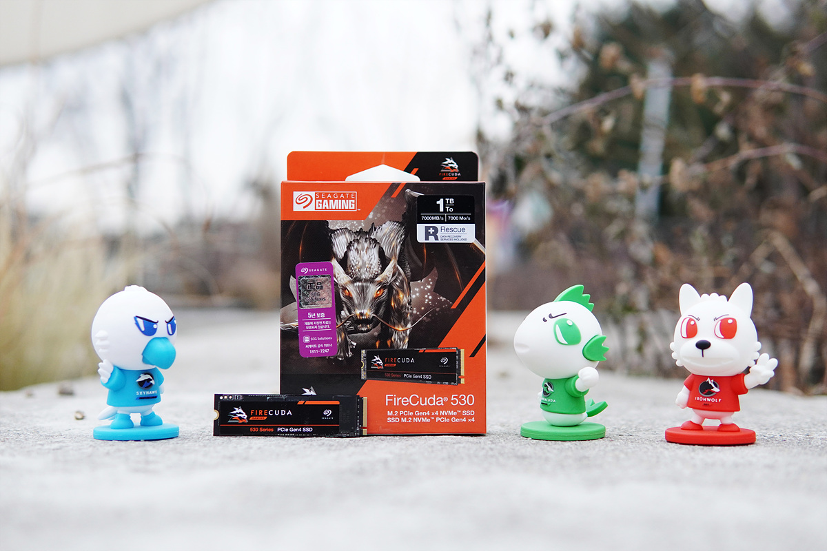 씨게이트는 바라쿠다, 아이언울프, 스카이호크 3개의 라인업이 있지만 속도면에서는 파이어쿠다가 가장 빠른 플래그쉽 라인이라고 할 수 있습니다. 파이어쿠다는 510 / 520 / 530 3개로 구분이 되며 510은 PCIe3.0을 520과 530은 PCIe 4.0을 지원합니다. 스티커뿐만 아니라 제품을 상징하는 캐릭터 피규어나 굿즈를 좋아하는 편이라 파이어쿠다 역시 이런 아이템들이 빨리 나왔으면 좋겠습니다.
