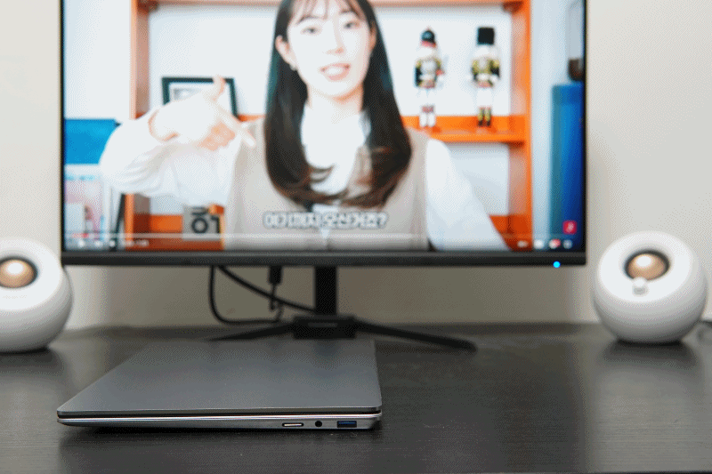 위에서 언급했듯이 색온도가 살짝 높은 편이라 화면의 색감은 조금 차갑게 느껴질 수 있습니다. 캐리북T는 mini HDMI 포트와 Type-C 포트를 활용한다면 추가로 두대의 모니터를 연결할 수 있어서 최대 3개의 화면으로 트리플 구성이 가능합니다. 모니터를 연결하려는 분들은 HDMI to mini HDMI 케이블이나 젠더를 준비하는 거 잊지 마세요.