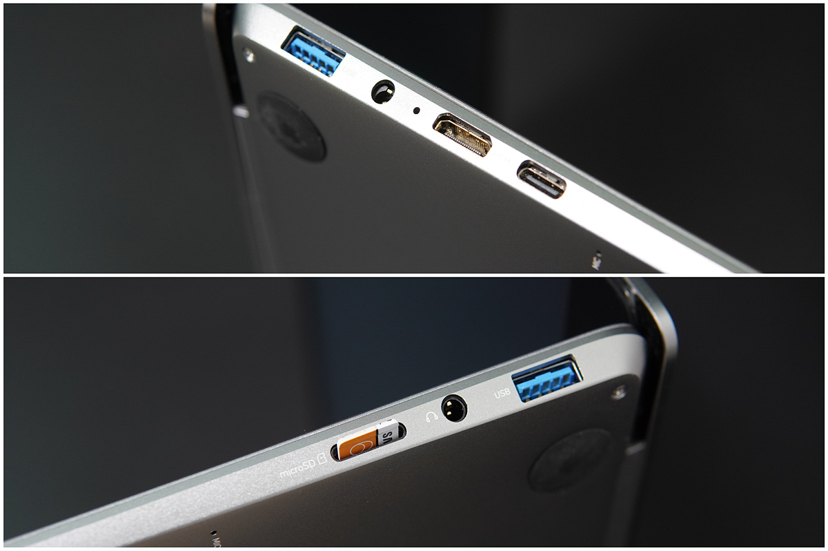 좌우로 USB 3.0 포트가 각각 한 개씩 있고 USB Type-C 포트는 PD를 지원해서 편리하게 충전을 할 수 있습니다. 오른쪽에는 microSD 슬롯이 있어서 추가로 용량을 확보할 수 있습니다. USB 포트는 넉넉한 편은 아니지만 부족할 경우 USB 허브를 사용하면 보다 편리하게 사용할 수 있습니다. (노트북을 사용한다면 허브는 필수 액세서리입니다.) 아쉬웠던 부분은 HDMI가 아닌 mini HMDI 포트였습니다. 추가로 모니터를 연결하기 위해서 mini HDMI 케이블이나 젠더를 사용해야 되기 때문에 익숙하지 않은 사용자들이라면 처음에 좀 당황할 수도 있을 거라 생각합니다.