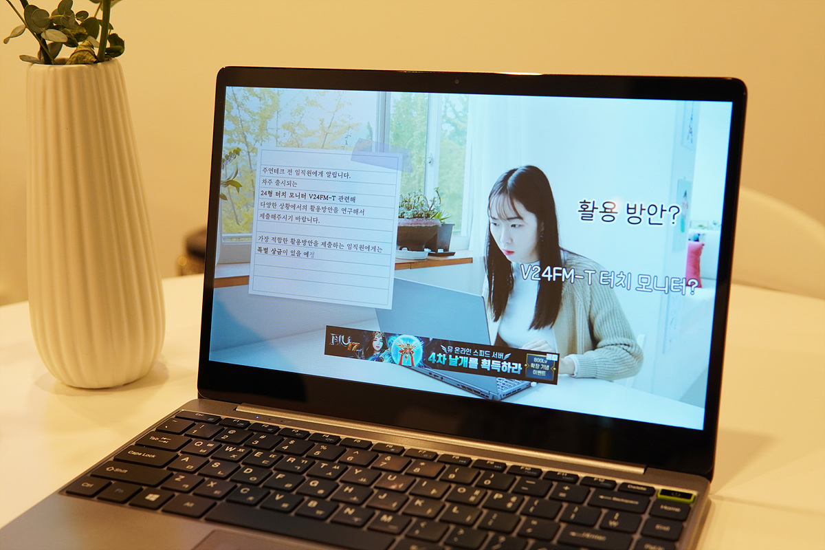 성능에서는 좀 부족한 모습을 보이는 게 맞겠지만 터치 패널을 지원하는 디스플레이, 키보드, 트랙 패드, PD 충전 등 여러 가지 부가 기능으로 편리하게 사용할 수 있었습니다. 무엇보다 Windows 10 Pro가 설치되어있는 제품임에도 불구하고 40만원대의 가격은 정말 매력적이라고 생각합니다. 특히나 온라인 수업을 해야 하는 아이들이 여럿이 있는 집에서는 노트북을 아이들에 맞춰 구입을 하려면 꽤나 부담이 될 수밖에 없을 테니까요. 가볍고 부담 없이 들고 다닐 수 있는 세컨드 노트북을 찾는 분들도 눈여겨 봐두시면 좋은 선택이 될 거라 생각합니다.