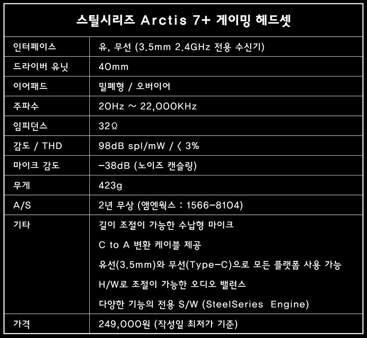 비싼 가격이지만 인정. 스틸시리즈 ARCTIS 7+ 게이밍 헤드셋