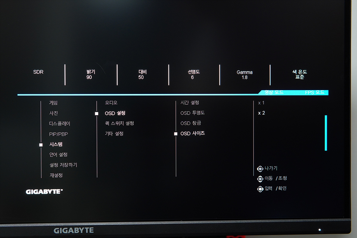 OSD 메뉴가 정말 많게 디테일하게 설정할 수 있는 부분도 좋았지만 기가바이트 모니터들은 이런 기능들을 전용 소프트웨어인 OSD Sidekick으로 더욱 편리하게 사용할 수 있습니다.