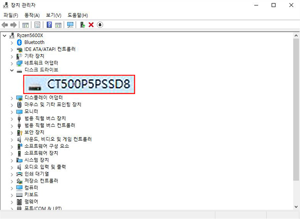 바이오스나 장치 관리자에서 P5 Plus를 확인할 수 있습니다.