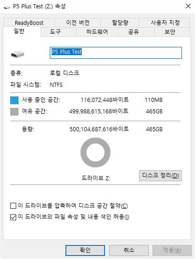 현재 드라이브의 상태를 한눈에 확인할 수 있습니다.
