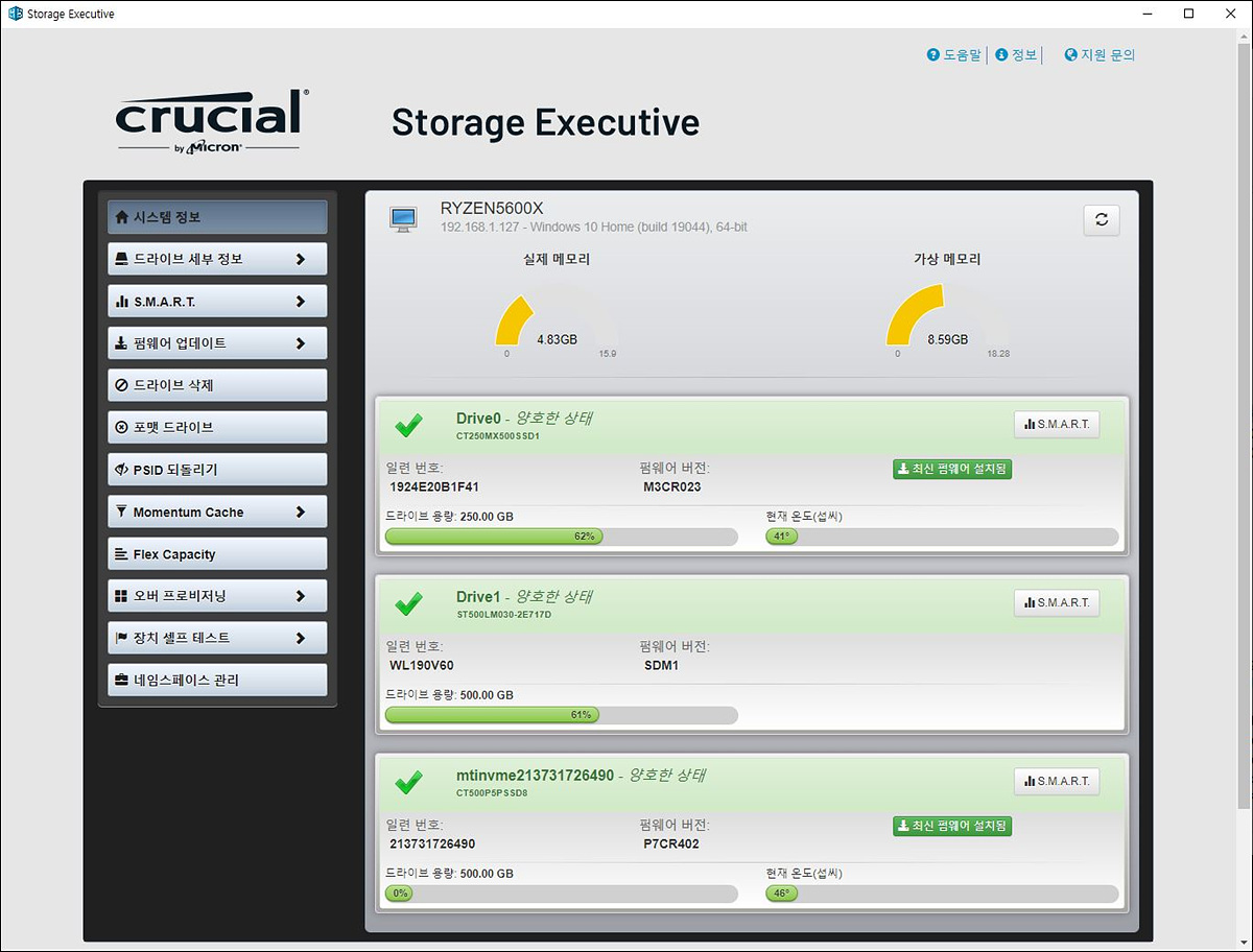 마이크론은 Crucial Storage Executive로 SSD의 관리와 몇 가지 부가 기능들을 사용할 수 있습니다.