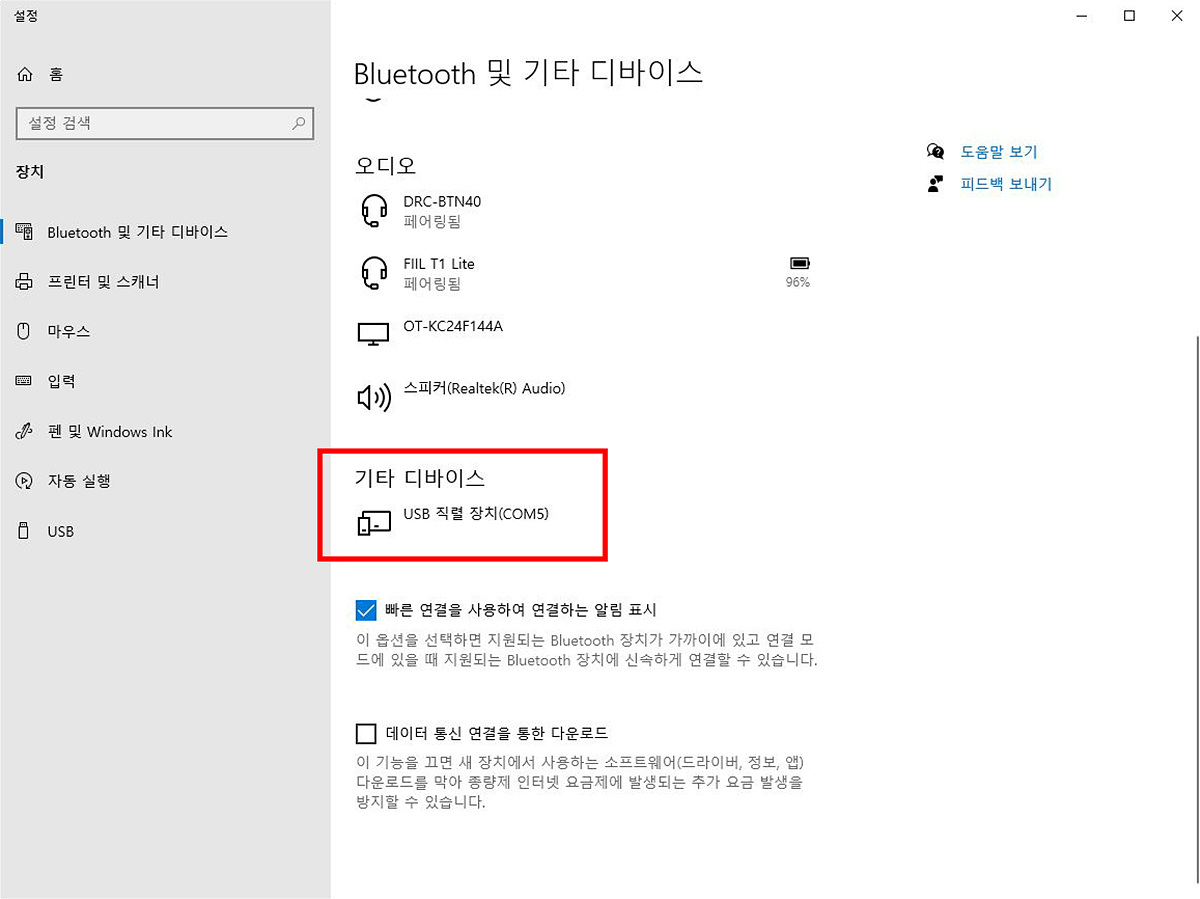 USB 케이블을 연결하면 기타 디바이스로 인식이 되지만 전용 소프트웨어인 TOURBOX CONSOLE을 설치해야 컨트롤러의 기능을 제대로 사용할 수 있습니다.