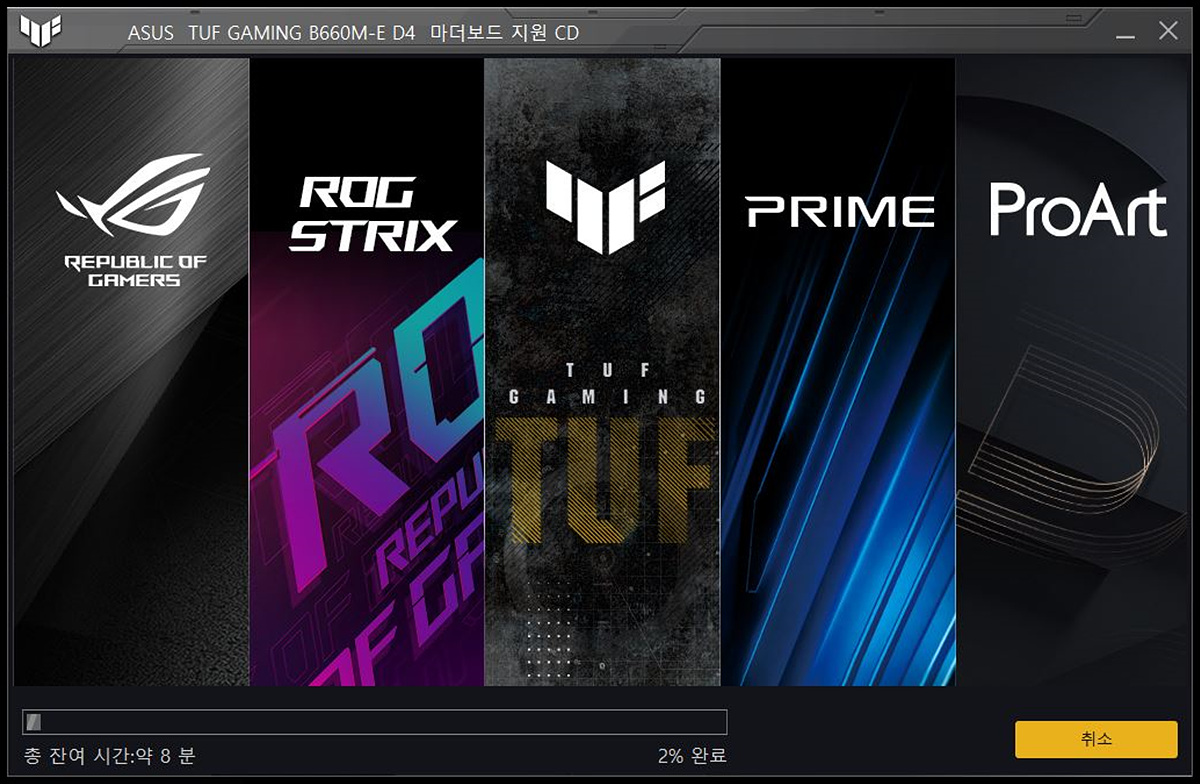 네트워크에 연결이 되면 Armoury Crate를 자동으로 다운로드할 수 있는 안내 메시지가 나옵니다.