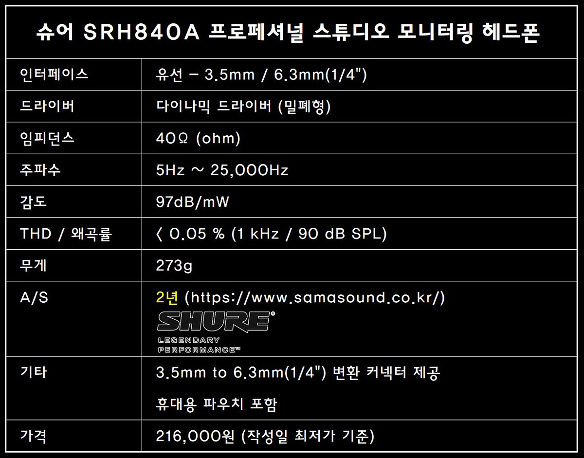 모든것이 적당한 슈어 SRH840A 프로페셔널 모니터링 헤드폰