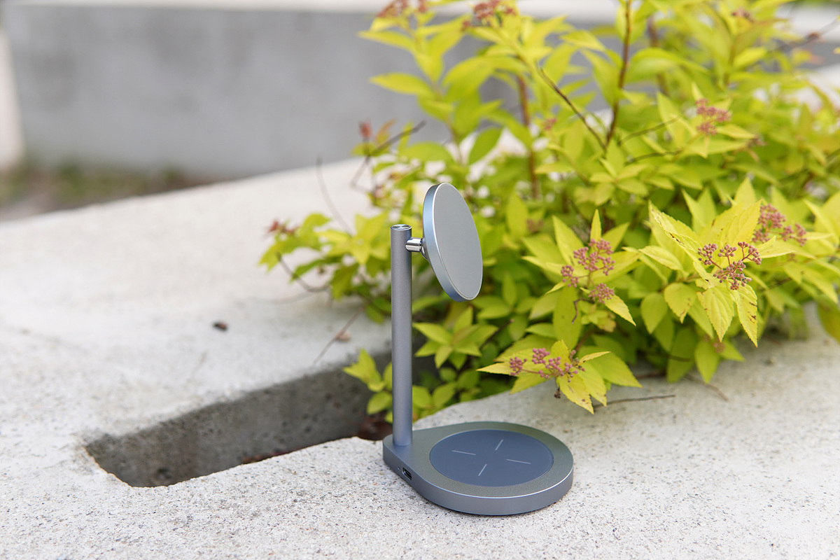 맥세이프는 아이폰이나 아이패드, 펜슬, 에어팟, 태그와 같은 여러 가지 주변 기기들을 이용할 때 더욱 빛을 발하며 강력한 자성으로 편리하게 사용할 수 있습니다. 이번 시간에 소개하는 제품 역시 이런 맥세이프 기능을 이용해 두 개의 기기를 동시에 충전하거나 스마트폰을 거치할 수 있는 2 in 1 충전기입니다.