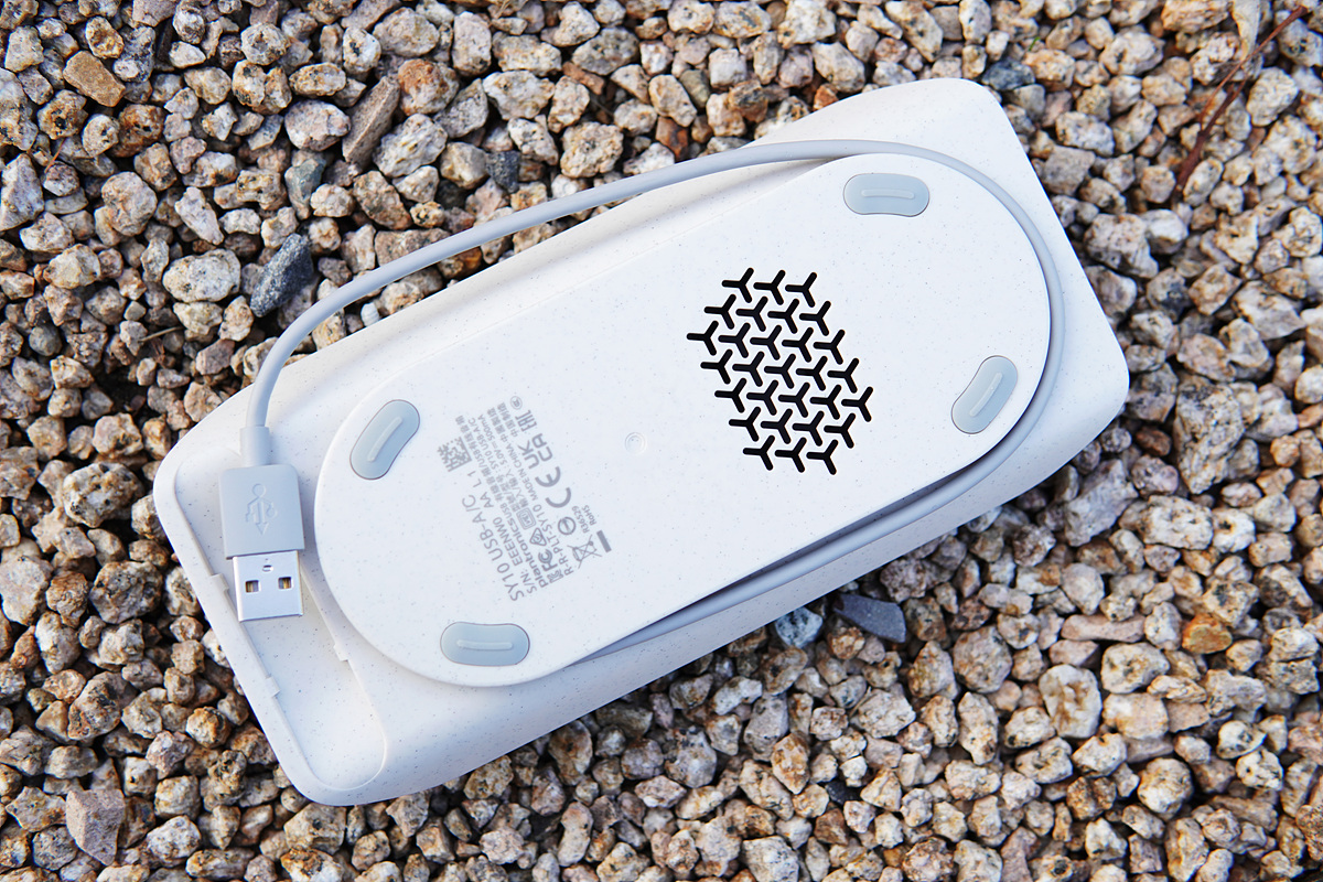 별도의 배터리가 없이 케이블로 연결되는 유선 방식이며 케이블은 바닥 쪽에 홈으로 감아서 정리할 수 있으며 USB 커넥터 역시 편리하게 보관할 수 있습니다. 유선 제품에서 가장 문제가 되는 부분이 케이블의 보관인데 이런 아이디어는 정말 칭찬해줄 만합니다.
