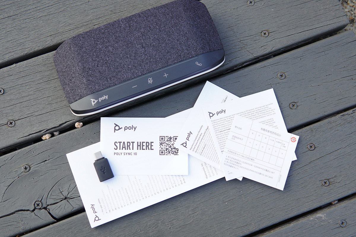 Poly Sycn10은 MS Team 버전과 일반 버전으로 나뉘어 있으며 박스 표시가 되어있습니다. (USB 타입은 모두 같습니다.) 저는 봉인을 중요하게 생각하는 편인데 이게 빠져 있어서 아쉽더군요.