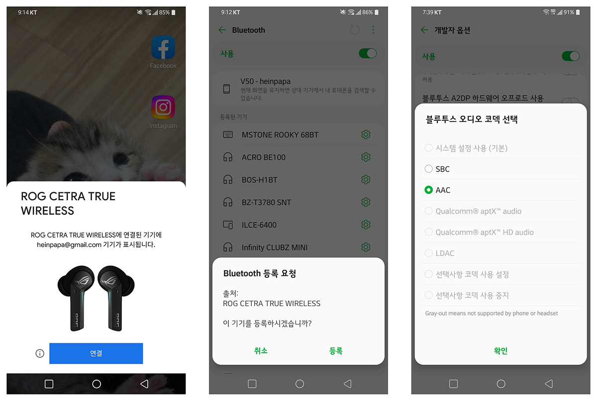 스마트기기가 근처에 있다면 자동으로 페어링을 할 수 있으며 다른 기기와 마찬가지로 검색을 해서 등록할 수 있습니다. 코덱은 AAC를 지원하고 있습니다.