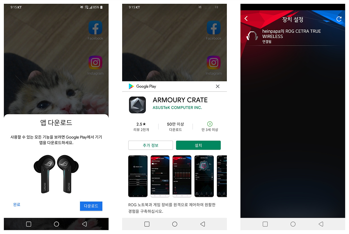 페어링 후 전용 앱(Armoury Crate)으로 기기의 설정을 바꿀 수 있습니다.