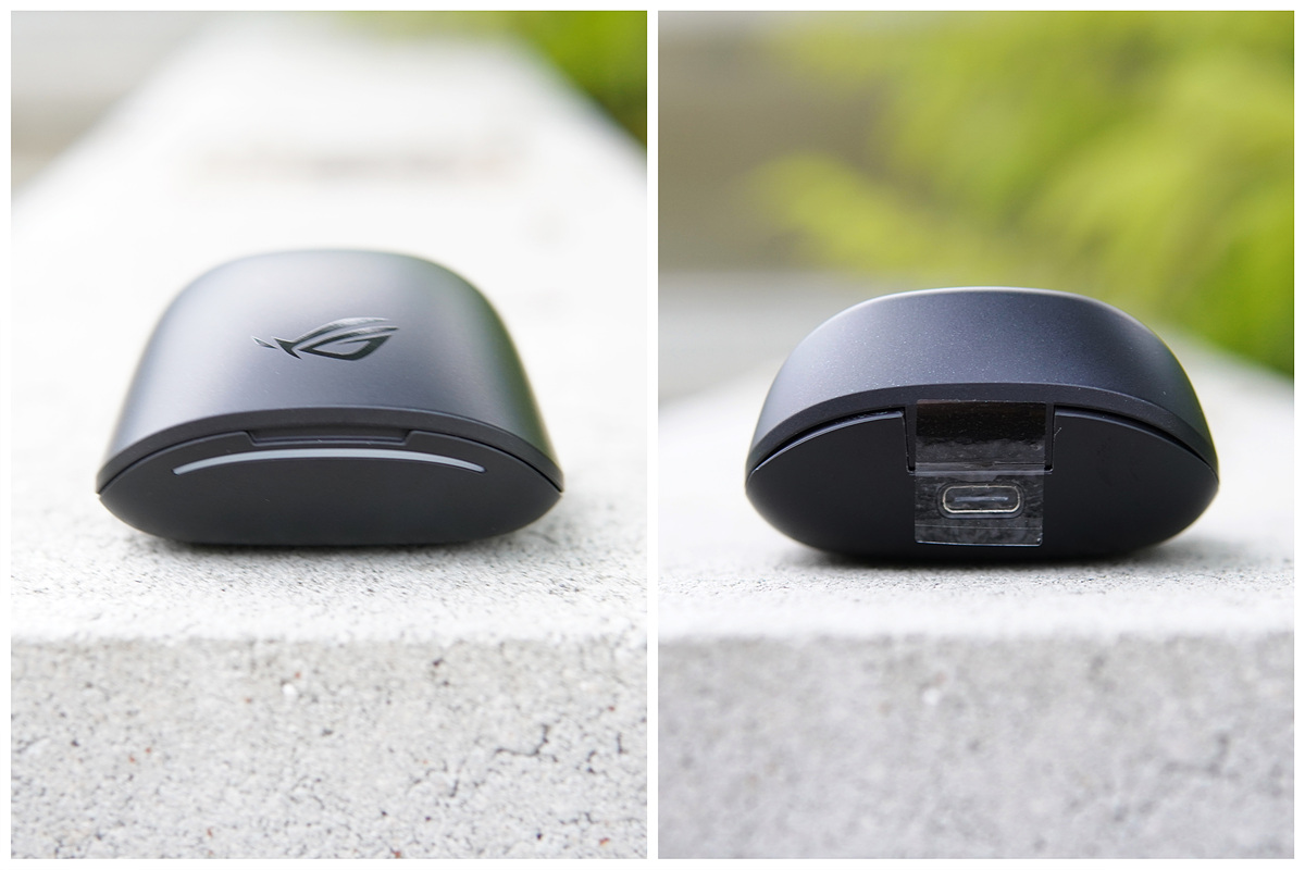 이어 버드를 충전할 때는 옆쪽에 빨간색으로 LED가 켜지며 케이스 안쪽에는 ROG 로고에 도트 LED가 켜지며 감성을 뽐내지만 사실 저 로고를 볼 일이 거의 없습니다.