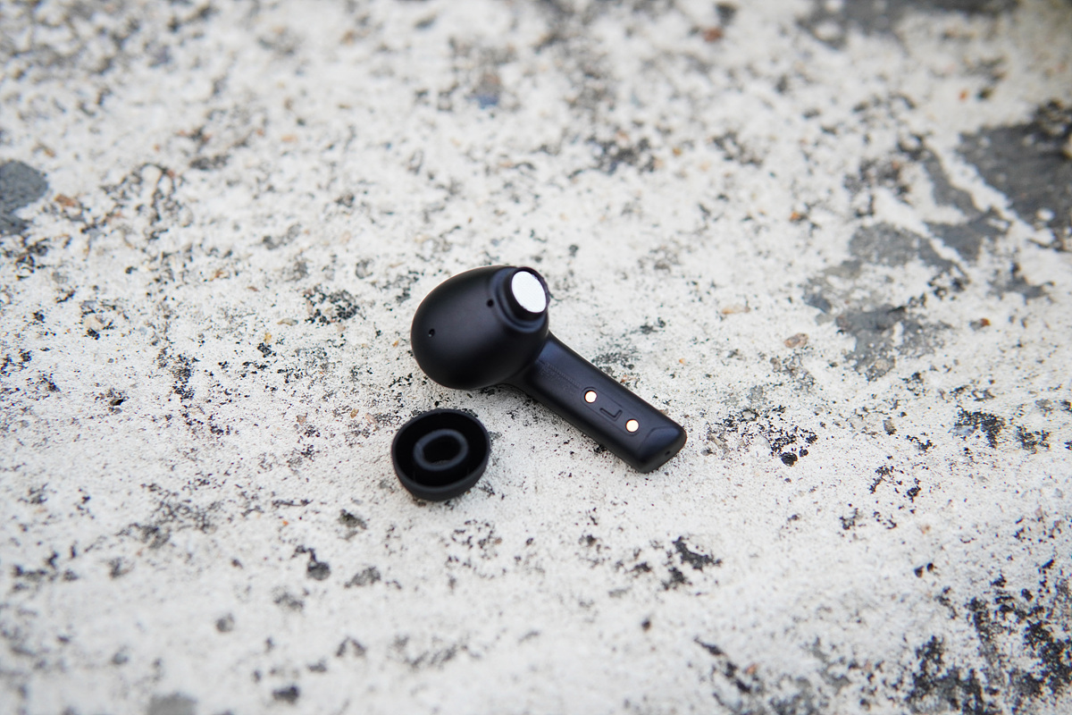 이어 버드의 노즐은 좀 짧아서 귀 안쪽으로 들어가는 형태가 아닌 바깥쪽을 채워주는 형태로 고정됩니다. 노즐과 이어 팁이 타원형으로 되어서 스템 구조의 다른 제품들처럼 너무 앞쪽으로 기울이게 되면 고정이 잘 되지 않으니 각도를 잘 맞춰야 합니다. 노즐이 귀 안쪽으로 들어가는 타입이 부담스러운 분들에게는 좋을 거라 생각됩니다.