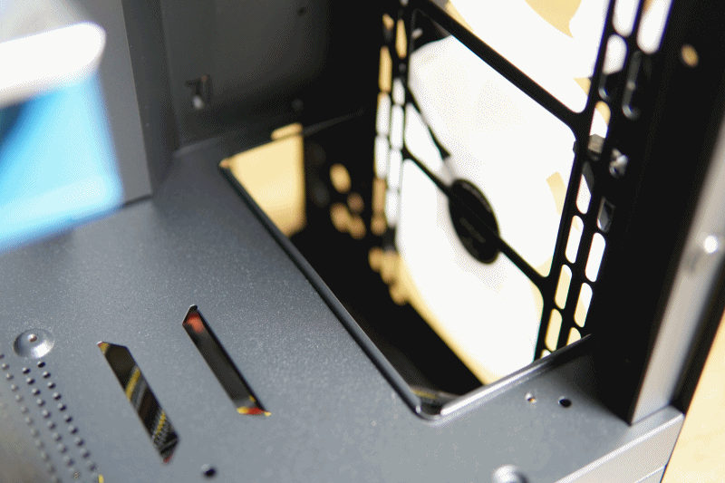 케이스 전면에 라디에이터 + 쿨러를 장착하기 위해서는 가이드를 분리해야 합니다.