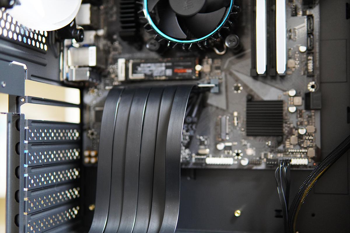 라이저 케이블을 사용하면 그래픽카드를 세로로 거치할 수 있습니다. (라이저 케이블은 별매입니다.)